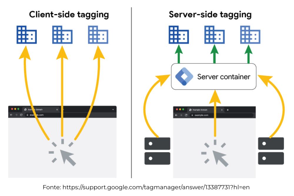 Imagem: Client-side tracking vs. Server-side tracking | Google